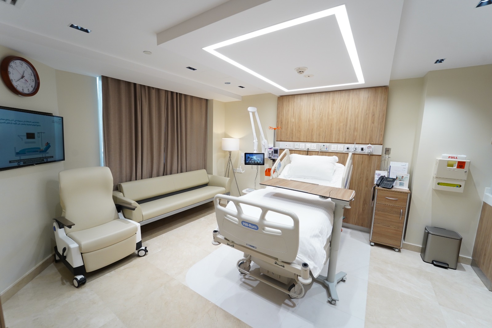 غرفة مريحة مصممة لتلبية احتياجات المرضى خلال فترة الإقامة في المستشفى مع توفير الرعاية الطبية اللازمة وبيئة مناسبة للتعافي.